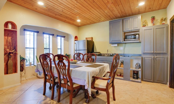 Experience a relaxing stay at this 2-bedroom, 1-bath vacation rental in scenic Santa Rosa. Natural foliage and ample outdoor space frame the home — perfect for small families or close-knit friends. Head out to explore the beauty of Estero Llano Grande State Park or tee off at a local golf course. After a day filled with adventures, return home and heat up dinner in the kitchen.