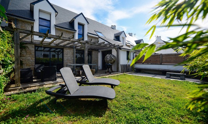 Charming contemporary house designed for 8 people maximum (children and babies included), the Triplette OUEST is ideally located: close to the Petite Plage side Quiberon Bay, perfect for children ... and slightly higher water temperature than on the Wild Coast! and a few steps from the Grande Plage Ocean Beach, very popular for surfing, sand yachting, kite surfing, sunset walks, etc.
