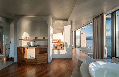 GeneralPrivate hot tub, Number of living rooms 0, Ping - 16.6, Number of bedrooms - 0, Bay view, Bathtub or shower, Square feet - 592.0, Bed count minimum 1, Bed count maximum 1, Square meters - 55 |