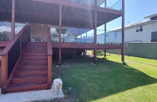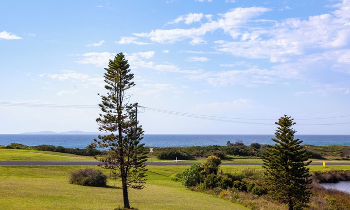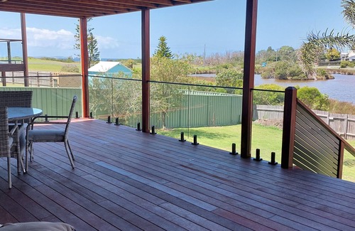 This one-bedroom, self-contained guest wing with a private entrance has a spacious porch overlooking a duck pond, with views out to sea, with Montague Island sitting on the horizon.