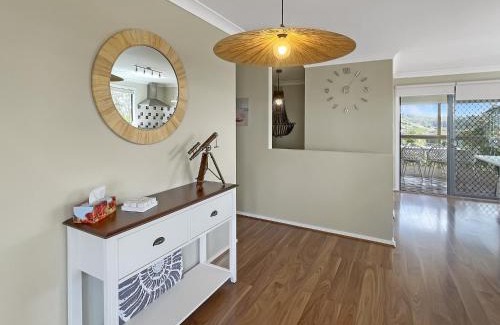 Coastal Upper-Level Home with Shared Pool Access offers accommodations in Batehaven, 2 miles from Batemans Bay Marina. Both free Wifi and parking on-site are available at the vacation home free of charge. Coastal Upper-Level Home with Shared Pool Access features 2 bedrooms, a fully equipped kitchen with a dishwasher and an oven, a washing machine, and 1 bathroom with a hair dryer. Towels and bed linen are provided in the vacation home. The accommodation is non-smoking. The accommodation conveniently has an outdoor pool. Moruya Airport is 13 miles away.