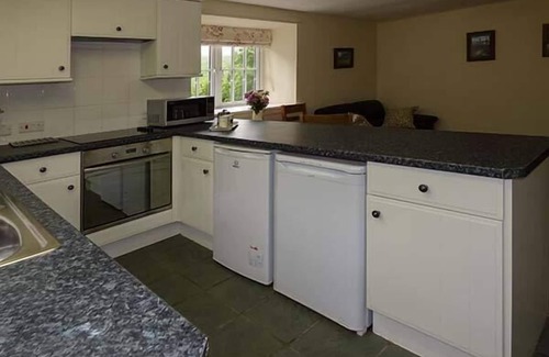Amenities: Electric central heating with woodburning stove. Electric oven and hob, microwave, fridge, freezer, washer/dryer, dishwasher, TV with FreeSat, DVD, WiFi. Fuel, power and starter pack for stove inc. in rent, additional fuel available to purchase from owner. Bed linen and towels inc. in rent. Ample off road parking. Bike storage. Orchard garden with lawned area, patio and furniture. Two well-behaved dogs welcome. Sorry, no smoking. Shop 8 miles, pub 4 miles. Stream 30 secs walk. Note: No infants or children. Note: No mobile phone reception. Note: Due to location, WiFi connection is variable and bandwidth very limited.