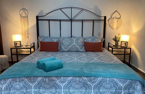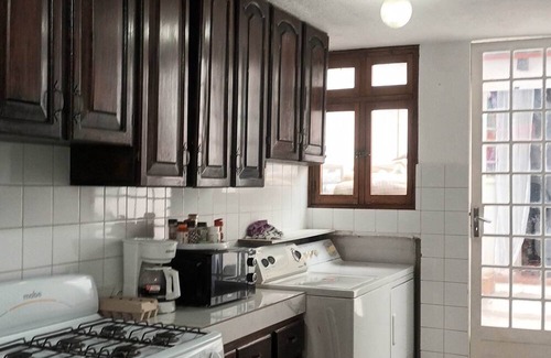 A cozy, colonial, private house in a quiet residential, ideal to get away from the city in the moddle of the city. Centric to all the touristic areas, close to malls, bars, restaurants and airport. With parking space, pool and view point overlooking the beautiful city. Two ventilated and naturally lit bedrooms with closet and working space with its private bathroom each. Warm living room with fireplace, dining room and patio, kitchen and laundry room. Comfortably and fully furnished and equipped to feel at home away from home. Beautiful, green pathway and seating area to enjoy reading or drinking coffee listening to birds sing.