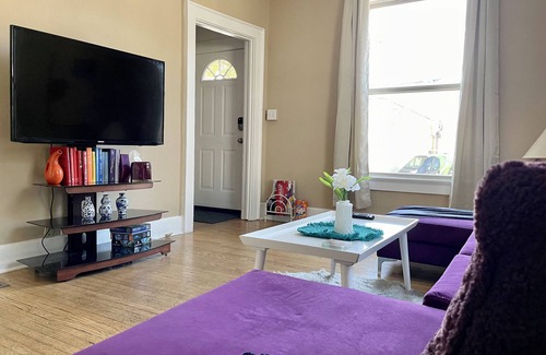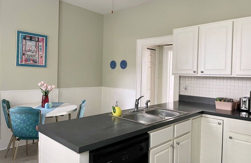 Color Pop Casa | 2BR/1BA Townhome near Ford Center is located in Evansville. Color Pop Casa | 2BR/1BA Townhome near Ford Center provides accommodation, featuring Child Friendly, Internet, Kitchen, among other amenities. This House features Child Friendly, Internet, Kitchen, to make your stay a comfortable one.
