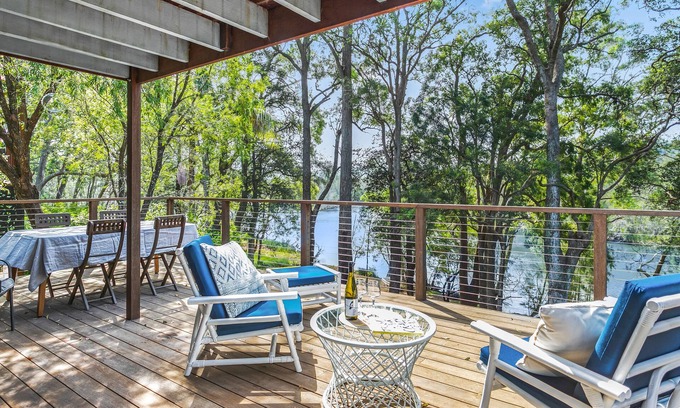 Relax & take it easy at this unique riverside getaway. Perched above Conjola creek sits The Hideaway, a place to lose yourself amongst the trees and tranquil sights and sounds of nature.