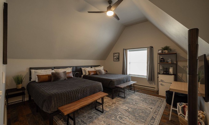 The vaulted ceilings, picture perfect views of town and secret cub cave make this room un-herd of. Also featuring a two luxurious queen beds, mini-fridge, coffee station, walk-in shower, a desk and thoughtful touches throughout. Great for families or up to 4 guests. Welcome to the Winter Park Chateau. We're a little bit different, and we love it that way.