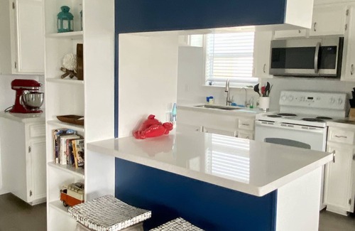 This cute beach home boasts a spacious fully equipped kitchen with a reverse osmosis unit under the kitchen sink for drinking & cooking water.