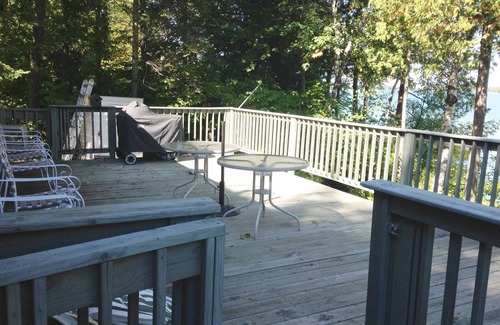 Outdoors you will find an attached deck with propane gas grill and smoker, patio furniture for 6 people to enjoy meals, all with views of Grand Lake. In the evenings you can enjoy the fire pit on the deck. The lower patio is down a flight of stairs to the lake, where you will find kayaks, fire pit, and dock. Spend the day swimming off the dock, and lounge in the sun on the swimming platform. Or use the kayaks to explore Grand Lake, or even go fishing off of them. The dock is available for your boat or your boat rental. There is a boat lift available (for extra charge) with remote control with powered lift if you choose to rent a pontoon boat. (See below) Grand Lake is an excellent fishing lake with plenty of places to go. A public boat launch is only 5 minutes away. Grand Lake is also excellent for water skiing, sailing, or anchoring your boat and spending the day on the boat.