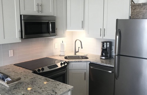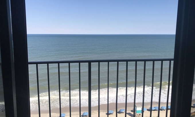 Our Seaside Retreat is a newly renovated beautiful, OCEANFRONT, TOP FLOOR condo featuring one bedroom with a luxurious king size bed, one bathroom with custom tiled walls, updated and well stocked kitchen with gorgeous granite counter tops, new doors, all freshly painted walls and ceilings, wood floors, flat screen TVs, high speed wifi, grilling common area, private walkway to the beach, 2 elevators, outdoor showers, heated indoor pool, outdoor pool, convenient ground level bathrooms right off the beach, security, convenient off-street parking and 24 hour check in/out services. Enjoy the beautiful views from the oceanfront balcony with seating for dining or lounging.