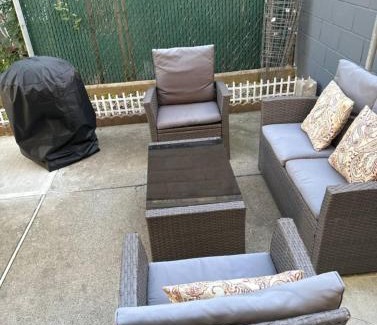 BathroomBathtub or shower, Bathtub, Hairdryer, Toilet, Private bathroom, Conditioner, Body soap, Towels, Toilet paper, Shampoo, Guest bathroom, ShowerMedia & TechnologyFlat-screen TV, Cable channels, Streaming service (like Netflix), Satellite channels, TVGeneralCarbon monoxide detector, Carbon monoxide sources, Air conditioning, Fire extinguisher, Hardwood or parquet floors, Private entrance, Heating, Tile/Marble floor, Smoke Alarm, Iron, Trash cansKitchenCleaning products, Dryer, Kitchen, Kitchenette, Washing machineLiving AreaSofa, DeskOutdoorsTerrace, PatioBedroomWalk-in closet, Extra long beds (> 6.5 ft), Childrens' cribsViewViewBuilding CharacteristicsPrivate apartment in buildingRoom AmenitiesSofa bed, Non-feather pillow, Adapter, Clothes rackPhysical distancingSingle-room AC for guest accommodationCleanliness & disinfectionHand sanitizerAccessibilityHearing accessible |