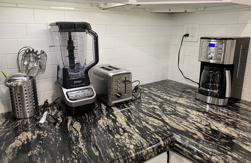 -Please feel free to enjoy the modern kitchen, fully equipped, to prepare a gourmet meal, as provided the following amenities: stove top oven, microwave, dishwasher, refrigerator, blender, coffee maker, dishes, pots, pans, silverware, glassware, salt, sugar, pepper, oil.