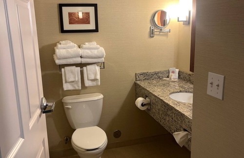 Comfort Suites Marietta - Parkersburg offers 102 air-conditioned accommodations with safes and coffee/tea makers. Accommodations have separate sitting areas and are furnished with double sofa beds and desks. Pillowtop beds feature premium bedding. Guests can make use of the in-room refrigerators and microwaves. Bathrooms include bathtubs or showers, complimentary toiletries, and hair dryers.