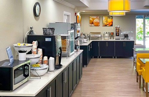 A restaurant, a fitness center, and a snack bar/deli are available at this hotel. Free buffet breakfast, free WiFi in public areas, and free self parking are also provided. Additionally, coffee/tea in a common area, a seasonal outdoor pool, and a business center are onsite.