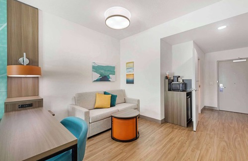 Comfort Suites Titusville near Kennedy Space Center offers 122 air-conditioned accommodations with coffee/tea makers and irons/ironing boards. These individually furnished accommodations have separate sitting areas. 50-inch Smart televisions come with cable channels. Bathrooms include bathtubs or showers.
