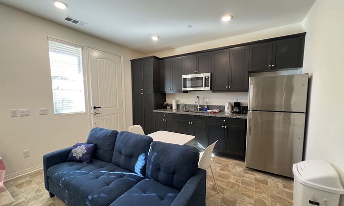 New 1bed 1bath guest house with kitchen for simple food cooking(Note: There is no gas stove, but have microwave and refrigerator). Laundry room in unit.
