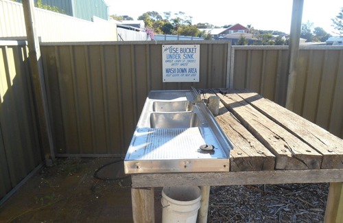 Fish cleaning facility (shared), plenty of room for cars and boat.