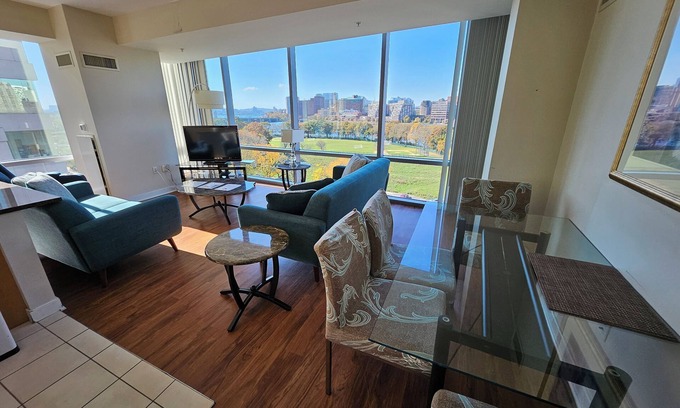 Whether you're here to support a loved one receiving care or visiting Boston for an extended stay, this sunny and quiet apartment offers the space, comfort, and convenience your family needs.