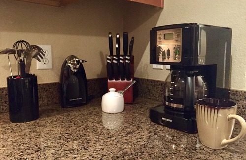 Enjoy a morning coffee on our covered outdoor patio. Relax in the cozy living room and watch the desert sun set while enjoying our wood-burning fireplace and 42-inch Smart TV with full HD cable package, and your favorite streaming apps. The Wifi is free, and, if you must do laundry…no problem! We have an in-suite washer and dryer, along with an iron and ironing board.