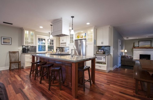 • Kitchen with high end appliances, farm house sink, prep area, and plenty of seating for the entire group to dine
