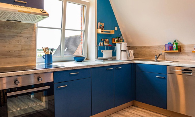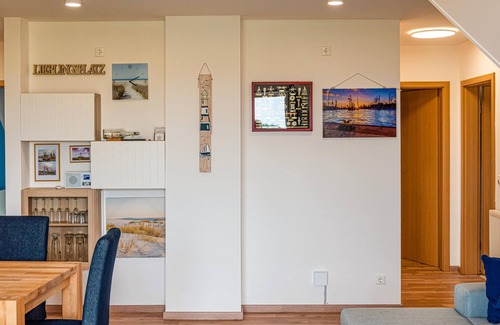 Here you can relax and recharge your batteries for your vacation at the North Sea. The cozy apartment invites you to a cozy get-together and the balcony with a view of fields is simply a favorite place- here you drink your first cup of fresh coffee in the morning and conclude your eventful vacation days with a glass of good wine.