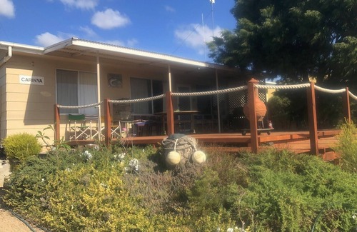 DOLPHIN VIEW is a comfortable 3 bedroom holiday home on the Yorke Peninsula, South Australia, accommodating up to 8 guests. It is a beachfront property with a lovely front deck and sea views. The house is a three hour drive from Adelaide.