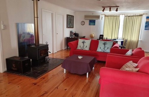 If you love seafood, there's some great fishing right in front of our property. Grab your rod, a few cockles and squid for bait -- esky, ice and cold beer optional but recommended! Walk to the left of the boat ramp one hour either side of the high tide and toss in a line to try your luck with Whiting, Flathead, Tommies, Mullet and Salmon trout. At low tide you can walk out to the blue line in knee deep water and bag a few King George Whiting.