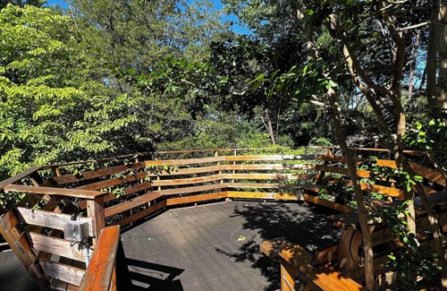 We love and appreciate our trees. We have tried to keep the natural atmosphere by not removing too many of them. The atmosphere is relaxing. The upper deck makes you feel like you are sitting in the trees and at night, you are a little closer to the stars.