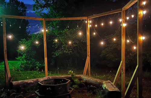 This is a "glamping experience", not a hotel stay, almost like camping. The cabins are NOT soundproof. You will likely hear birds; acorns falling upon the tin roof and will see butterflies and lightening bugs. You can take advantage of our Grand Porch to enjoy the fresh air, the mountains and sky. Our Grand Porch is also a wonderful spot for an outdoor wedding.