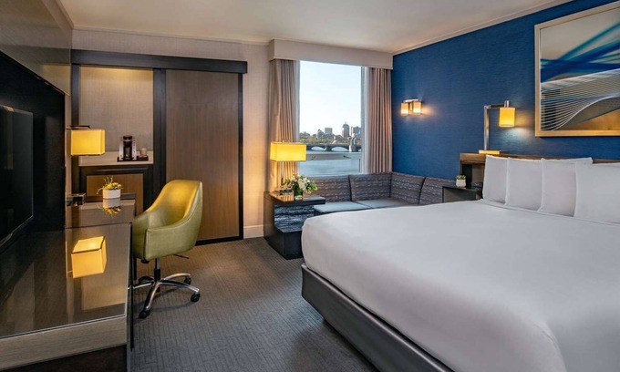 Step into our luxurious retreat and soak in the comfort and style. Enjoy a dip in our indoor pool under a breathtaking glass atrium roof. Keep up with your routine in our top-notch fitness center, or treat your taste buds at our on-site restaurant. Perfect for your Cambridge explorations or college visits, this we’ll be your cozy home base. From your spacious room or suite, marvel at the iconic Charles River and Boston skyline views.