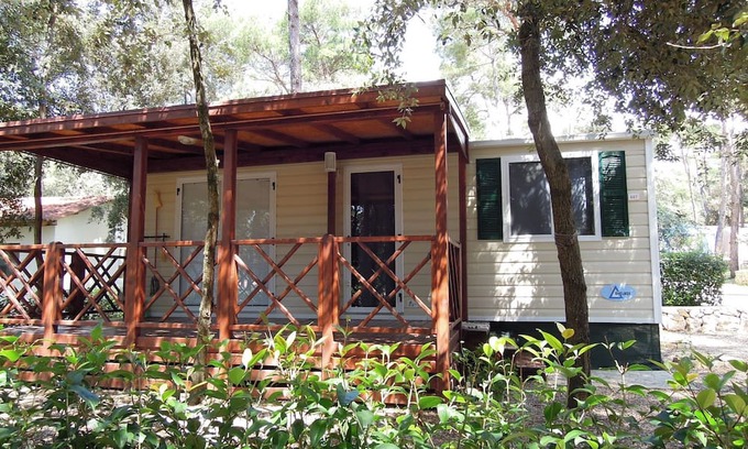 Camping Soline is an attractive and green holiday park. It offers two types of identical comfortable chalets, furnished for six people. The only difference is the location of the chalets. Chalet HR-23210-01 is further the park at least 100 metres from the sea. The HR-23210-03 is closer to the sea, namely between 50 metres and 100 metres away. Both types have their own veranda with garden furniture.