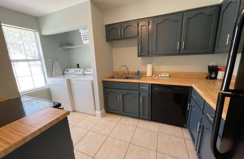 This home has a full kitchen stocked with essentials for cooking, washer/dryer, large living room TV with relaxing recliners, King and Queen beds, a private screened porch and grill. You have everything you need for a weekend or multi month stay. The home has 1.5 bath, jack&Jill style (shared shower/tub combo).