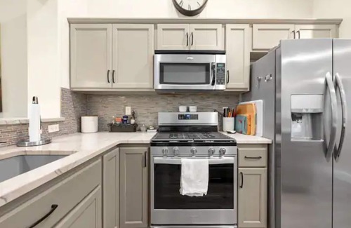 • Kitchen: Fully equipped with stainless steel gas range, coffee maker, basic cooking products (salt/pepper/oil/baking sheets), and more. Enjoy your meals at the dining table or kitchen island!