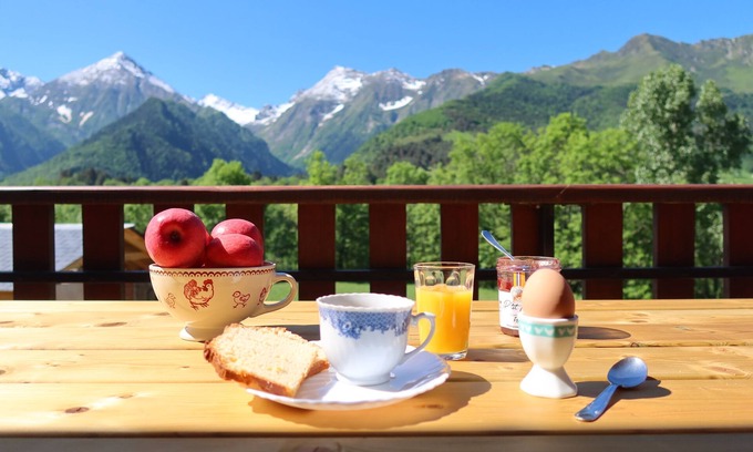 House located in the village of Azet enjoying an exceptional panorama of the mountains that can accommodate up to 10 people.