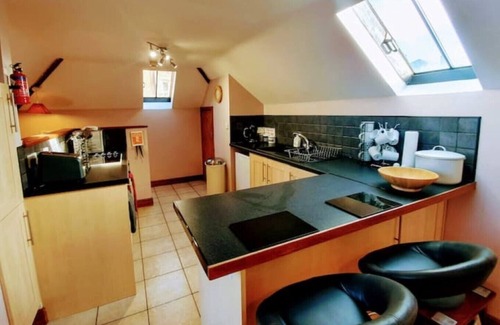 When it’s time to relax, the lounge features a low, comfortable leather sofa, perfect for sinking into after a day at the beach or a long walk along the beautiful coast. A smart TV is provided with Freeview and complimentary Netflix. Super-fast broadband means you can stream films with ease.