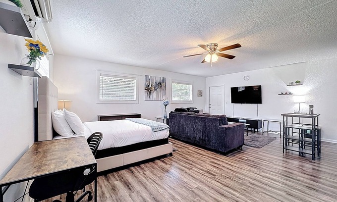 Welcome to our newly built studio apartment, located in the heart of Apopka, Florida. Tucked away on a peaceful 0.5-acre property, this charming retreat offers a unique blend of modern comfort and rustic charm.