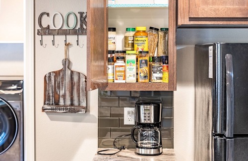 Gather your loved ones and spend time in the kitchen preparing your favorite recipe, it is fully stocked with cookware, spices and the basics to make you feel right at home.