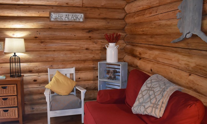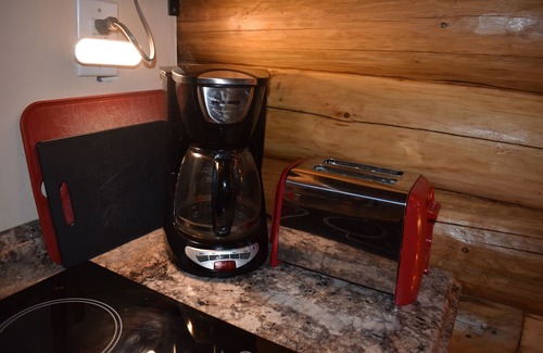 There is a short walk to a peaceful lake. This is a 16x20 open cabin with classic round logs, with a loft. It is most comfortable for 2-3 adults and 2 kids but can sleep up to 5 adults. With kids, there is a steep ladder to the loft but railings in the loft. There aren't railings on the porch. The bedroom is small and has sliding barn-style doors for privacy and a pillow top queen mattress. The ladder to the loft is in bedroom.