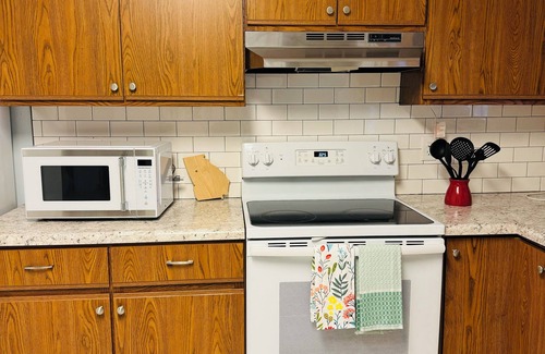 Comfortable, well-furnished home equipped with everything for your needs. Living room with 65'' Smart TV and fully stocked kitchen with coffee station and complimentary coffee, toaster oven/air fryer, microwave, and all cooking utensils. Dedicated workspace and free washer and dryer use. Pets welcomed with additional pet fee per stay