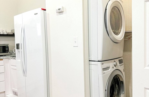 This lovely space features 1 queen bed in the cozy bedroom, a modern bathroom with a shower and hair dryer, and a welcoming living room with a sofa bed. Guests can enjoy amenities like heating, AC, WiFi, an iron, and a washing machine during their stay. Enjoy your time in Sandy at our serene studio.