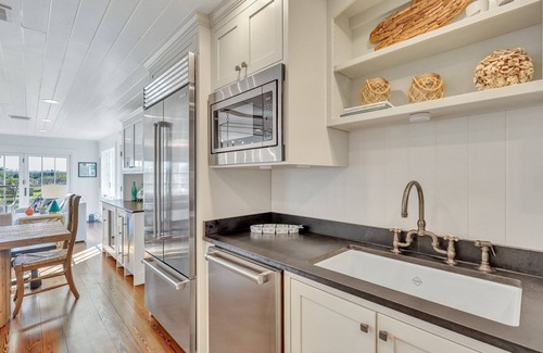 Those who are looking to pair their time exploring local restaurants with time serving up home-style meals will be thrilled with the inclusion of a fully equipped kitchen in this property, with the finest Wolf and Sub-Zero appliances. The Wolf six-burner gas range will properly prepare any meal for all occasions. Dine at the table indoors or make your way outside to the patio for a perfect alfresco moment in the fresh air.