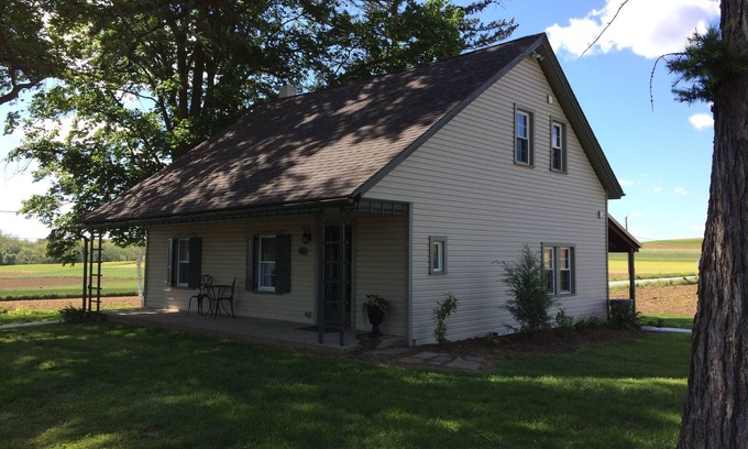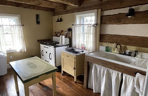 This completely restored home in Lancaster County’s Amish country is the perfect retreat from life’s worries. Situated on an acre along country roads surrounded by farmland you can enjoy from the back porch or patio area with wood burning fire pit. Our cottage offers modern conveniences with touches of vintage style, like stunning, original hardwood floors, exposed beams and restored fireplace. You can relax in the quiet, cozy home with a fully-equipped kitchen, including a stove, oven, microwave, full-size refrigerator, baking dishes, and pots and pans, or drive just a few minutes to many attractions and restaurants.