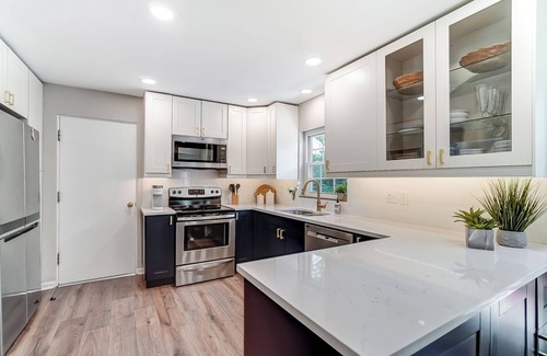 Enjoy beautiful West Kettering location in this completly remodeled home. The bright and airy living room will not disappoint. Chef's kitchen with quartz countertops, new cabinetry and all new appliances. The large primary bedroom is equipped with a King size bed, quality bedding, large dresser and double closet. The 2nd bedroom boasts a queen size bed, fully appointed, full dresser and single closet. The 3rd bedroom is a bright study with a sofa bed and closet for storage. The bathroom is completely remodeled and comes fully stocked. The private yard has a new patio with table and chairs, umbrella and Weber grill. Full size washer and dryer are available for you in the basement. This location is superb, close to Main campus of Miami Valley Hospital, Kettering Hospital, University of Dayton, the Fraze Pavilion is within walking distance and down town is only 4 miles away. 1 car attached garage totally refreshed. Come enjoy your stay in a beautiful quiet neighborhood.