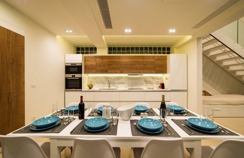 In the second villa emphasis was given on spaciousness and comfort. The big open plan space includes an airy living room with a big flat TV. The homely and modern style kitchen is fully equipped with electrical appliances and a dining table.