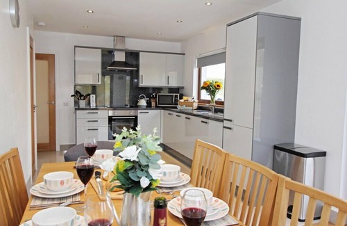 Amenities: Oil central heating with woodburning stove. Electric oven, grill and hob, microwave, fridge/freezer, washing machine, dishwasher. Smart TV, DVD player, WiFi. Fuel, power and starter pack of logs for woodburning stove inc. in rent. Bed linen and towels inc. in rent. Highchair and travel cot. Off-road parking for 4 cars. Gardens with gravelled area, lawns, decking and furniture. Pet-friendly. Sorry, this is a non-smoking property. Shop 0.1 miles, pub 0.2 miles. Note: Though electricity is included in the rent, electric for charging cars is not included in the rental. Note: Please bring own linen for travel cot