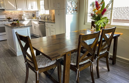 Our quaint and historic downtown is within walking distance but you'll want to bring a pair of sneakers as there are a few hills to scale if you choose to walk. Our local favorite upscale restaurants, sushi bars, farmer’s market (on Sundays), as well as inexpensive but delicious taco huts are minutes away located on Avenida Del Mar and El Camino Real. Our newly remodeled kitchen with all the essentials is also the perfect place for home-cooked family meals. BBQ on the large upstairs balcony and patio and take in the serenity, sights and sounds of the Pacific.