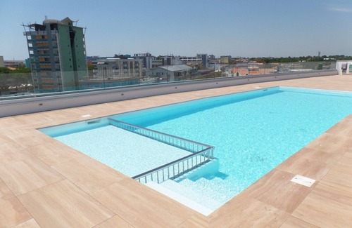 New apartment house built in 2017, located in the town centre at only 200m from the beach, with swimmingpool on the top of the building.