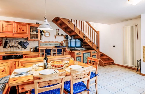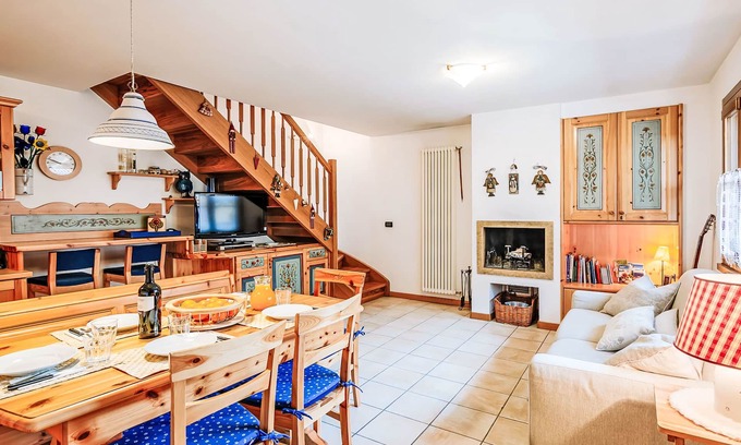 "Cesa Emilia", 3-room apartment 70 m2 on 2 levels on 1st floor. Practical and comfortable furnishings: living/dining room with open-hearth fireplace (only for decoration), dining table, kitchen corner, bathroom and TV (flat screen). Kitchenette (oven, 1 ceramic glass hob hotplate, microwave). Upper floor: 1 double bedroom with sloping ceilings with 1 double bed. Exit to the balcony. 1 room with sloping ceilings with 2 beds and 1 pull-out bed. Exit to the balcony. Shower/bidet/WC. Heating available only from 01.12. to 01.05. Marvellous view of the mountains. Facilities: hair dryer. Parking space n 12 (1 car), garage (1 car). Please note: non-smokers only. Private entrance, fire extinguisher, no lift. IT022036B4KB2PCUK3