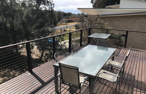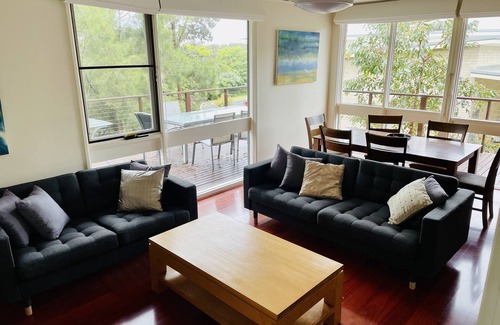 Dogs need holidays too! So dogs are welcome at the house - but only outside. The backyard is fenced and dogs are allowed on the nearest beach at certain times but not on the beaches of the surrounding National Park. Dogs are not permitted in the creek area or the beach near the creek. Please check the notice near the nearest beach for times when dogs are permitted on the beach.