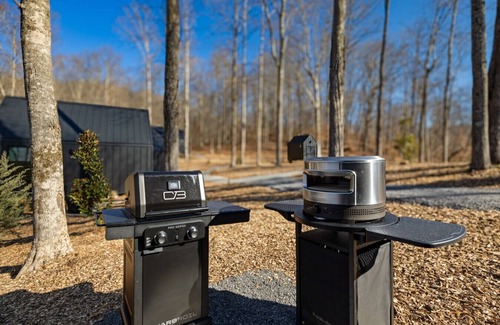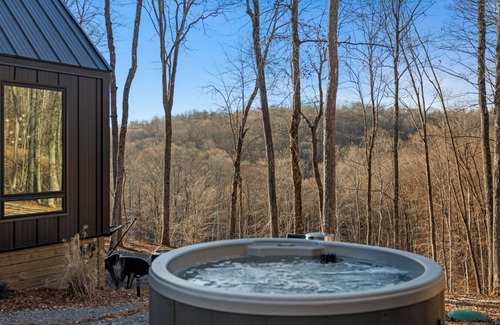 Beautiful 55 acre Tennessee mountainside property featuring eight 500 square foot Nature Suite™ carefully designed for comfort, with a full kitchen, king bed, dinette set with seating for two, 55" smart tv, 50" linear fireplace, spa like bathroom appointed in Italian porcelain tile, Rain shower and Handheld shower. Expansive patio with hot tub, grill, pizza oven, Solo Stove smokeless fire pit, heated chairs and hammock.