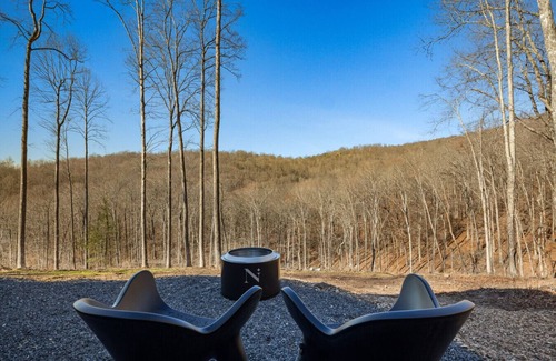 Beautiful 55 acre Tennessee mountainside property featuring eight 500 square foot Nature Suite™ carefully designed for comfort, with a full kitchen, king bed, dinette set with seating for two, 55" smart tv, 50" linear fireplace, spa like bathroom appointed in Italian porcelain tile, Rain shower and Handheld shower.